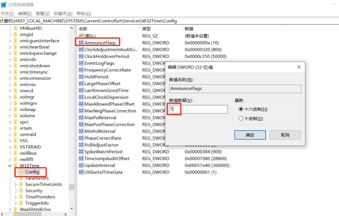 计算机\HKEY_LOCAL_MACHINE\SYSTEM\CurrentControlSet\Services\W32Time\Config