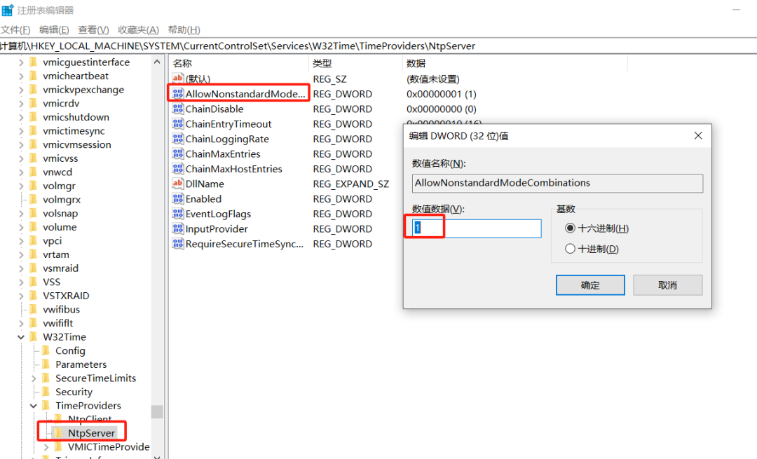 计算机\HKEY_LOCAL_MACHINE\SYSTEM\CurrentControlSet\Services\W32Time\TimeProviders\NtpServer